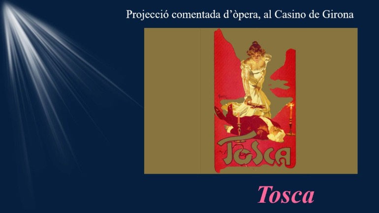 Seguint amb la presentació d'òperes que després es projecten, Carme Bou i Sánchez ens aproparà a un dels grans títol de Puccini: "Tosca". Es comentarà com va sorgir aquesta òpera i alguns motius que fan que sigui una obra tant atraient. Posterirment es projectarà l'obra sencera.